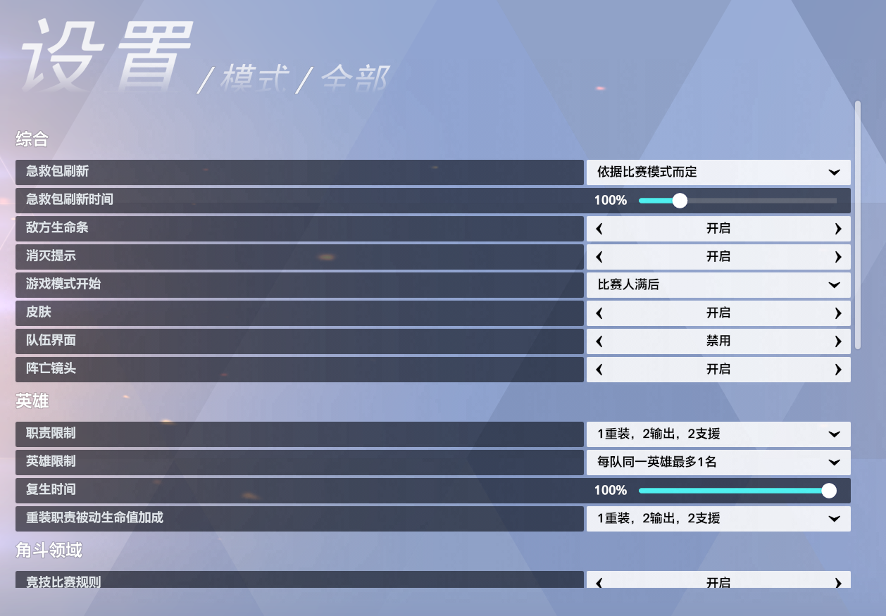 创建大厅后,先勾选阵容列表上方的角斗领域选项,在“设置”菜单→“模式”→点击“全部”选项就能找到大部分设置;若只玩特定模式,选择对应选项自定义即可。